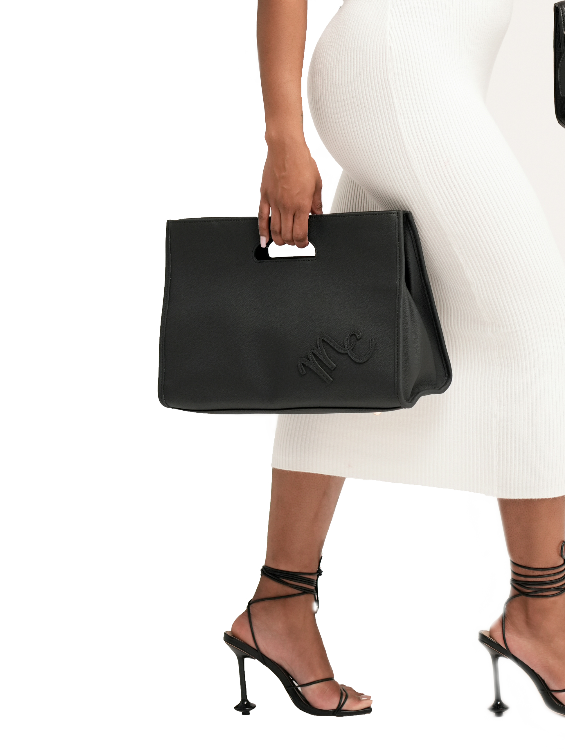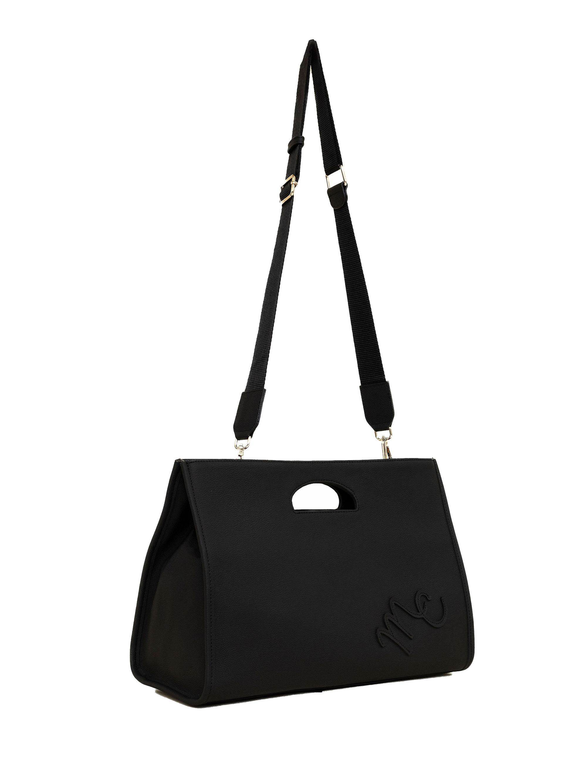 Structured large-sized tote bag. Tote can be worn in 2 ways as a top handle or with the additional bold straps attached. Inside pockets that can be used for storage